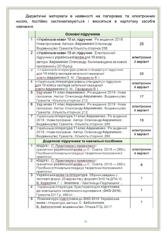 Дидактичні матеріали в наявності на паперових та електронних носіях, постійно систематизуються і вносяться в картотеку засобів навчання. 18